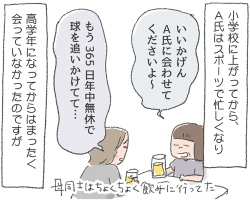 母同士はちょくちょく会っていたのですが、A氏がスポーツで忙しくなり、子ども同士が最後に会ったのは小学校3年生くらいだったかもしれない。