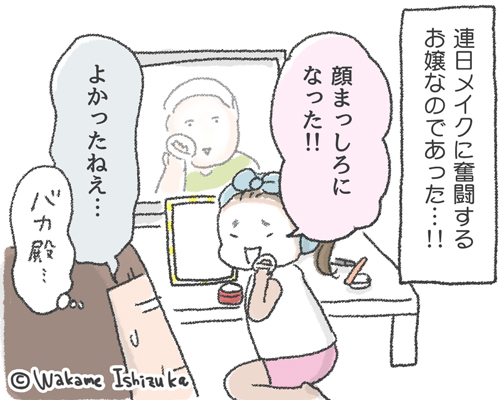今んところお嬢は顔を真っ白にすることに満足して、まだノーズシャドウやアイメイクまでには至っていませんが、今後どうなるんだろうか……。