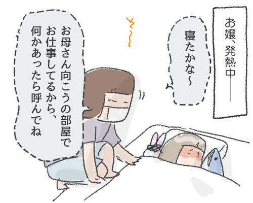 お嬢は高熱が出ると、頭が痛かったり怖い夢見たりで、けっこううなされることが多いです。