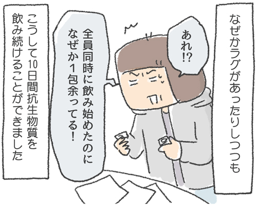ほんーーーとに大変だったけど、どうにか10日×1日3回の抗生物質を全員飲み切ることができました。