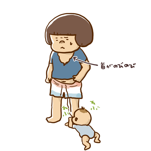 去年妊娠中に「マタニティウエアとか授乳服とかって一時しか着ないのにわざわざ買うとか情弱www 手持ちの服で充分でしょ~」とか言って無理矢理着ていたウエストゴムのボトムが総じてだるだる。 同じ理由でTシャツの首もだるだるです。 ケチらずにそれ用の買えばよかったよ…